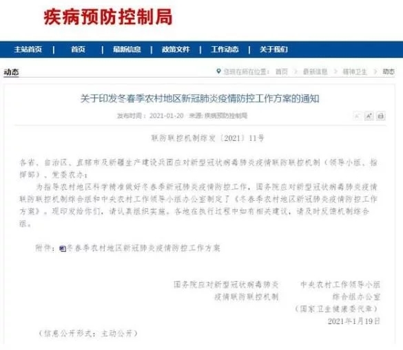 冬春季农村地区新冠肺炎疫情防控工作方案
